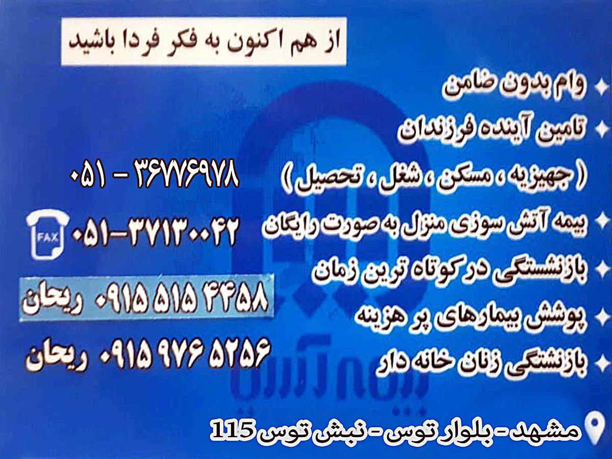 بیمه آسیا (کد26380) نمایندگی ریحان - بیمه آسیا در مشهد - بیمه شخص ثالث خودرو در مشهد - بیمه بدنه اتومبیل در مشهد - بیمه بدنه با تخفیف در مشهد - بیمه نقد و اقساطی در مشهد
