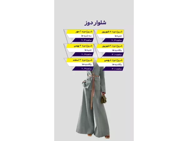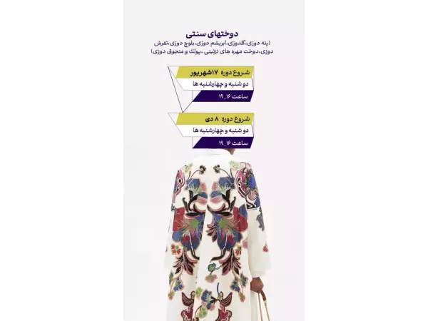 و طراحی و دوخت صنایع دستی هنری ارائه میشود و هنرجویان هر زمان بخواهند میتوانند